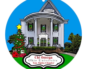 Chi Omega Sorority House At Ohio University Christmas Ornament Etsy Uk